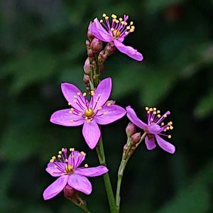 ハゼラン 爆蘭 ハゼラン科 ハゼラン属 原産地:中央アメリカ、南アメリカ ・多年草 ・草丈:40-150cm ・花期:6-9月 ・葉:長さ5-12cmの惰円形~倒卵形、やや厚く多肉質、全縁 ・花:円錐花序 ・花弁:5個、赤色~淡紅色、まれに橙黄色、長さ3-6mm ・萼片:早落性、長さ2.5-4mm ・雄しべ:15~20個程度 ・柱頭:3裂 ・花柄:長さ20mmまで ・果実:蒴果 直径3-5mmの3稜のあるほぼ球形、熟すと3裂する ・種子:黒色、長さ約0.8㎜のゆがんだ円盤形 別名:シュッコンハゼラン、サンジカ(三時花) 花言葉:「真心」「永遠にあなたのもの」「心の安らぎ」「平和」「永続性」「長寿」「愛らしい」「純粋」 ②-⑤ コケ/苔