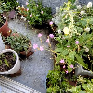 🩷ハゼラン🩷16時33分撮影 ①また今年も、暑いベランダの鉢やプランターから、可愛いお花の雑草🌸夕方頃から咲いてます ②③後ろの葉っぱ🌿は、レモンユーカリ 🏷️19日はピンクの日!