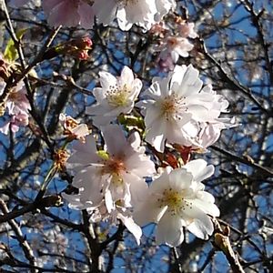 おはようございます。 GSのお仲間さんが神奈川県座間市にある「相模が丘仲よし小道」の十月桜(ジュウガツザクラ)を投稿していらしたので、おいらも見てきました。 薄いピンクからやや濃いピンクまで、小ぶりの花が青空に映えていました🌸 レモン茶さん、ありがとうございます😊