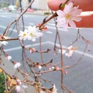 今日は暖かいので駅まで歩いてみたら 咲いてました!ジュウガツザクラ🌸 すごいな〜😃 これから新年会🍻
