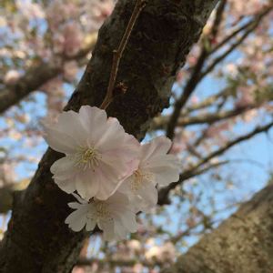 3月の桜🌸 十月桜。 こちら、春咲きのものが咲き始めました~。 ピークは4月上旬。 秋咲きは10月中旬に咲きます。