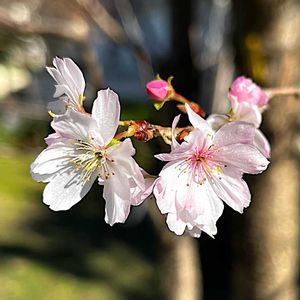 12月14日 今日のお花 💞🌸フユザクラ🌸💞 秋から冬に咲くサクラを総称して「フユザクラ」とも 呼びます。 ジュウガツザクラは 広く「冬桜」とも呼ばれる ジュウガツザクラ(十月桜)は二季咲きで、1年に2回開花します。 十月桜は開花期が2回あって10月~1月と3月~4月頃で、1回目は10月頃から開花し始め11月~12月にピークを迎えます。 ・冬に咲く桜は他にもカンヒザクラ、カンザクラ、コブクザクラなどがあり、これらを総称してフユザクラといいます。 ①② 2024.12月 服部緑地都市緑化植物園にて撮影 ③2024.3月立命館茨木キャンパスにて撮影 🏷️おしゃれな土曜日♪ 🏷️土曜日はお空の発表会