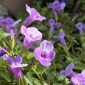 こんばんは♪ ストロビランデス 水差し冬越し後花壇に地植えした 2本目も大分成長して 日陰の庭に彩りを添えてくれています💜✳︎