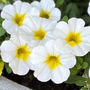 ✿♬゚+.✿♬゚+.カリブラコア✿♬゚+.✿♬゚+. ウノホワイトイエローアイ🌼 ホワイト×イエローの爽やかなカリブラコアです。 たくさんのお花を咲かせてきてます。 満開にはまだ早いですがまだ一度も切り戻しをしていないのでもう少し楽しんだらカットして梅雨の時期を乗り切ろうと思います🌿🐌🌿