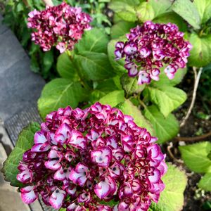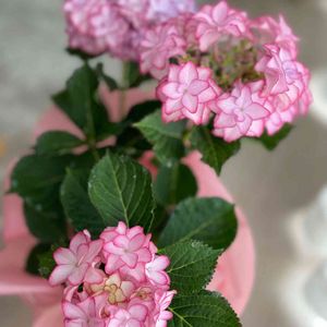 母の日に「ひな祭り」という名前の紫陽花いただきました🌸 縁取りが可愛い💕 枯らさないように育てます😅