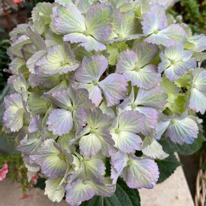 昨日紫陽花買ったばかりなのに.. まさかの珍カラーが一本立ちで540円だった🫣 だけどハイドランジアしか書いてなくて.. 皆さん種類わかりますか? 多分先始めグリーン→外側色ついてきてる 縁が葉っぱみたくギザギザしてるのが特徴