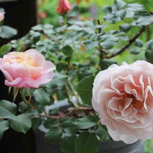 緑に映えるイーハトーブの香 今朝はクシュッと柔らかなお顔。 咲き進むにつれてだんだんとピンクに。。💗 甘く爽やかな香りも楽しみ😌