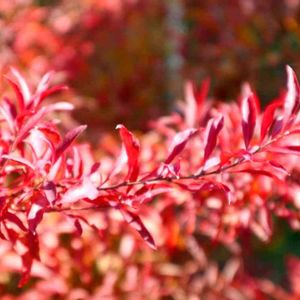 ユキヤナギの木が真っ赤に色づきました 朝日を浴びてキラキラ✨❇️✨❇️