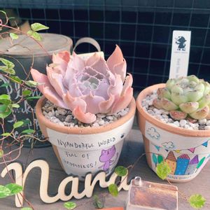 おはようございマース☀️.° 今日も良いお天気ですね! 我が家の多肉も可愛く色付いてきました♡⃛ 週末のイベントで狩ったコ達♪♪ フリフリピンクは"シャビアナ"の交配種 ちょっと変わった感じの色合い "red soo jeong" わたしのお誕生日に、お友達からいただいた鉢や雑貨と相性抜群(*ˊ˘ˋ*)。♪:*° 🏷𓈒𓏸︎︎︎︎毎月8日は鉢の日に参加しまーす✋ 今日も一日良い日になりますよーに🍀