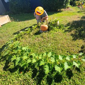 畑のパンプキン達🎃🎃🎃 ①②ゴツゴツお肌の「小菊」 野菜遺産プロジェクトのタネから育てました(*^^*) 大きくし過ぎたかな? 食べ頃が分かりません💦 ③握りこぶし程の「小菊」 さすがに早いよな♪ ④バターナッツかぼちゃ 受粉させてあげなかったから、ずーっと実が撃沈してできなくて……やっと形になってました(=^▽^=)👍 かぼちゃって、 雌花に雄花の花粉をつけてあげないと、実が途中で撃沈して、居なくなるのよ!!結実させるのにひと手間かかりますね🍀 一方 ⑤ソラナムパンプキン❤️🧡💛は 勝手に交配してくれて、ピカピカの実がたくさんだよー(☆∀☆)キラーン! ソラナムは、花ナスだから食べられないのが残念です🌸 でも、このピカピカが好きで また作っちゃう❤️