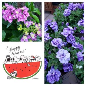 おはようございます☺️ 今日は暑くなりそうですね。 ペチュニア VIVAふわふわに咲いてきました 大きなヤマボウシの下の紫陽花もまだきれいに咲いています 毎月2日はスヌーピーの日 参加します❤