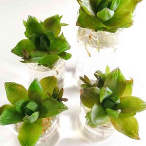 JAさんの直売所にて、ひとつ100円で売られていた、ハオルシア🌱 植えてはみましたが、どんどん色合いがくすんできて (。>д<) 思い切って鉢から外したら、やっぱり根を張っていませんでした 枯れた葉っぱを玉ねぎみたいに剥きむき 駄目もとで水栽培に切り替えてみます 容器はCAN☆DOの、これまた100円のコルク瓶
