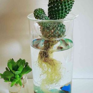 水栽培、第7弾🌱🌱🌱🌱🌱🌱🌱 水替えをサボってしまったサボテン🌵 根っ子が黄緑色に、でもこれはこれで綺麗かな DAISOで購入して、1年程、水だけで育てています🌵 底に沈めてあるのは、海で拾ったシーグラス🏖️
