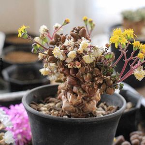 リトープスさん達、今年は開花早い😊夏が暑かったからかな。2枚目はヤフオクの購入株達😅ちょっと怪しい中華系と推測の出品者から買ったらコレ😭合計1渋沢さん😭今まで見たことない出物だったから覚悟の上ですが、酷さ加減は想定の5段くらい上ですな😭もう怪しい出品には手を出さん‼️
