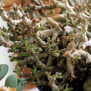 アデニア・グラウカを今年の2月に胴切りしましたが、胴切りした茎とその先端も根付いていますので気長に育てて行きたいと思っています。