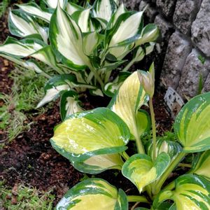 今日のお花 ギボウシがあると、庭がリッチな雰囲気になるようで いただいたり買ったり、どんどん増えています🌿🪴🪴🪴☘️ 左下のシルバーストリーク 葉っぱにウェーブがかかっていて可愛い☘️〰〰︎☘️〰︎❤️ 一目惚れでした🤠