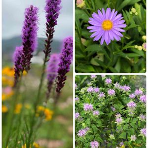 おはようございます😃 昨日は雨風がすごかった🌀☔️💨💨 お花達はなんとか無事でした☺️ホッ 庭に咲いている紫色のお花です🌸 リアトリス💜 チョウセンヨメナ💜 ヤグルマハッカ💜 しばらく晴れマークがない福井です😢 ジメジメ😩 嫌だなぁ〜