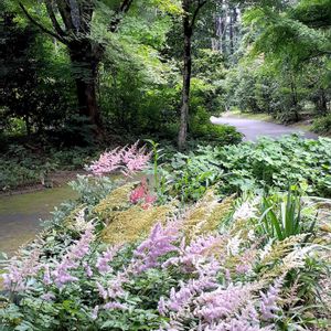 林の中の散策路に咲く 涼しげなアスチルベ 蒸し暑かったので標高の高い所に行きました 2.3℃涼しいです