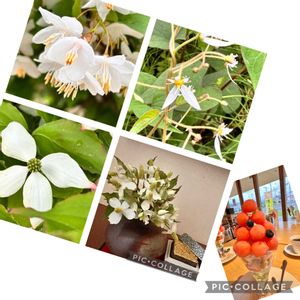 記録用 今日は一日中大雨☔️ ①1週間前に撮影した白いお花達 昨日友人といつものカフェでスイカのパフェ🍉(アイスもヨーグルトが入ってて🍉とちょっぴり罪悪感の少ないパフェ👍) ②エゴノキ1週間前は満開だったけど今日の雨でだいぶ散ったかな ③ヤマボウシ ④今年はユキノシタが増えていた 「下から撮っちゃイヤ〜ン🦵」って感じに撮りたかったんだけどなぁ🤣小さくて難しい💦 ⑤ドクダミの花ももう終わり気味 葉を取るとあまり匂いがしないので玄関に