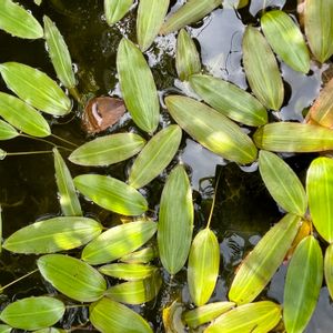 ヒルムシロ(蛭筵) ☘☘☘ 蛭がこの葉の上で休むの⁈💦 ナギの葉に似てるね🤔