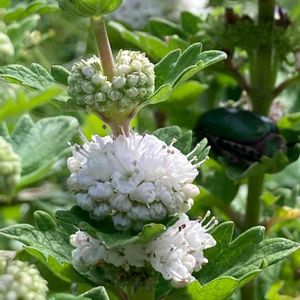 去年お迎えしたダンギクさん💕 今年も無事、咲いてくれました🤍✨ 可愛いお花を見せてくれて、ありがとう(ㅅ´ ˘ `)♡*゜ ちょうどいい大きさの葉っぱの上でコガネムシが休んでいます。