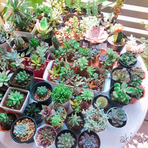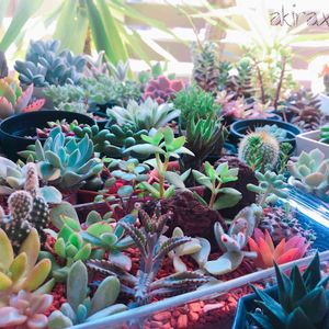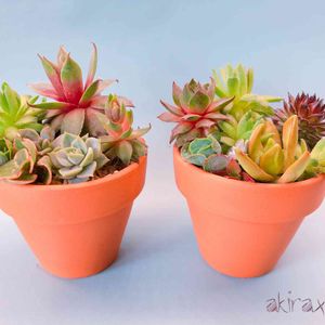 2つ寄植えしました🙌✨ 先週カットして乾かしてた子と、センペルビウム色々😊カラフルでお気に入りです❤️ 今まで植え替える場合は頑なにセラミスを使ってましたが、ついに土を使用しました💦セラミスは定着しにくいので、寄植えだと一緒に植えてる子が少し動くと引っ張られて抜けやすいんです😔それにしても、土だと寄植えしやすいー😂今後は植える子に合わせて使い分けたいと思います🙌🎶