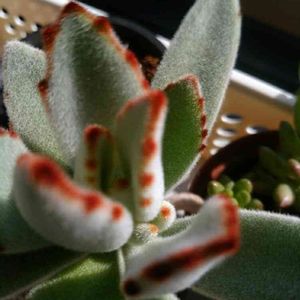 月兎耳から小さい芽がちょこちょこ出てきた⤴ このモフモフな感じといい、他の多肉には無い感じが良いですね✨