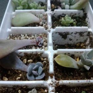 成長記録 狩った直後の植え替え時に むしった葉っぱを葉挿しにしたのですが、そちらからも可愛い芽?根?が出始めてます🎶