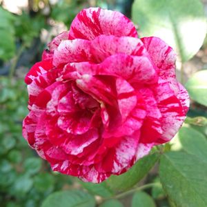 かなりの暑さですが 薔薇が咲きました🌹 ホワイトとレッドの絞りの薔薇 ✨センチメンタル✨ 美しすぎます(◍•ᴗ•◍)