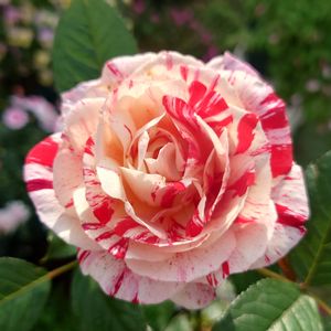 おはようございます😄 バラ🌹センチメンタル 夏の間もちらほらと咲いてくれています➰ 先月咲いていたのは小さな花径だったけど 少し大きくて絞り模様が少ない花が咲いています🤗