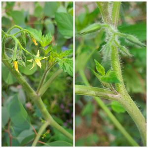 こんにちは👋😃 ミニトマト 脇芽を、欠き取る前です。 ミニトマトを、育てる上で、重要な作業の1つです。 皆さんは、ミニトマトどう育てておられるのか、 1本仕立て? 私は、2本仕立てに、しています。 第一果房のすぐ下の脇芽を、摘まずに、伸ばして Vの字2本仕立てに、しています。 その脇芽が、一番強いらしいです。 後の脇芽は、すべて欠き取ります。 花が咲いているのが、第一果房なら、この脇芽を、欠き取らず、伸ばしていきます。 この写真の花は、第2果房なので、欠きました。 取り除くのは、お天気の良い日に限ります。 欠いたあとから、バイ菌が、入らないようにするためです。 脇芽が、わからないとお尋ねが、あったので、参考までに、投稿しました。 育て方を、よくご存知な方は、主旨を、ご理解くださいね。 よろしくお願いいたします。