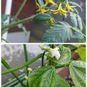 トマトとインゲン豆の花 少しずつ実ってくれて楽しませてもらってます(ˊ˘ˋ*)