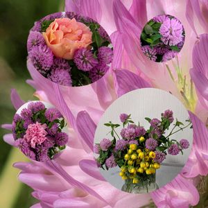 昨日のオルレアが入っている、頂いた優しい色合いのアレンジ🩷🌿 2枚目〜テラス付ベーカリー(飲み物フリー☕🎶)の庭の桃色の薔薇と紫陽花(お花好きのオーナーの愛が迫る〜🪅) 優しい微笑み☺️、口角を上げるトレーニングせんと✨💃
