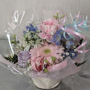 19日はピンクの日 アレンジでプレゼント🩷🌿 色合いが咲き進んでくるとうすーくブランに🤍🌿