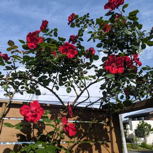 あっという間に終わってしまった我が家のバラ。 この子は一番先に咲き、遠くからもココが我が家だと、教えてくれる。 一重の真っ赤な大輪。 アルティシモと申します😌