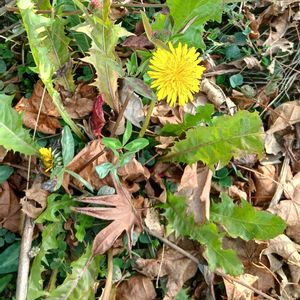 💛蒲公英 🍂枯れ葉に囲まれて咲く けなげです💮👏‼️ 赤詰草もね💗