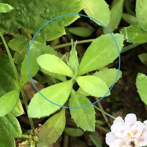日陰にこぼれ種から咲いてた紫蘇orえごま❓にまたまたショウリョウバッタ君🦗⁉️😎食べないでね~😅