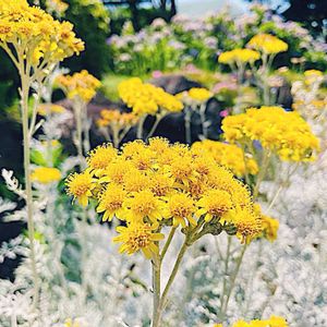 シロタエギクが花を咲かせました。初めて見た! 菊というからには咲くんだとは思ってたけど、なんかでっかい母子草みたいな花ですね⎛◍・̄ധ・̄◍⎞
