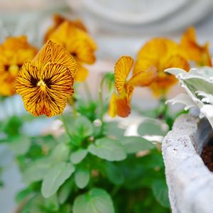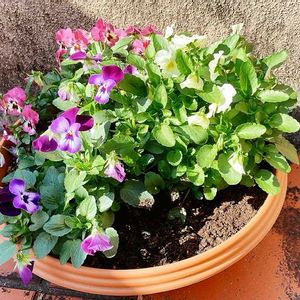 秋冬の寄せ植え進捗状況🪴天気が続いたからビオラがすくすく大きくなって嬉しい〜!シクラメンは写真撮ってから葉組も✅レモンは重そうだから小さいのを収穫🍋