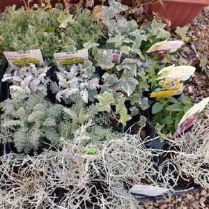 こんばんわ。昨日購入してきました。鉢の寄植えの挿し葉に使う予定のシルバーリーフ系統です。色がシルバー系統なので派手な花に合わせたいです。よろしければご覧ください。