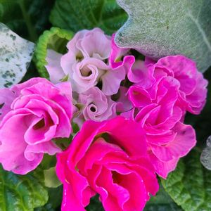 こんにちは👋😃 大阪6℃寒いです。 寄せ植えのバラ咲きジュリアン、ピンク 寒さに、強い花でも寒そうです。 綺麗に発色していて可愛いです。