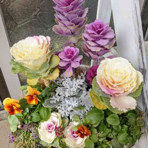 先週買った寄植え用のハボタンたち。やっと植えました。 寒さでアリッサムがヒヨヒヨ気味になってしまいました💦