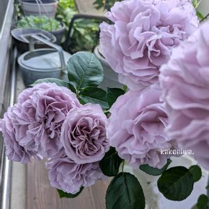 ローズムービー③ 薔薇育てを通して、主人公が益々粗野になってゆく中盤戦です。 ベランダに移してからご機嫌だったのに、2年目はチュウレンジハバチの襲撃に遭いました。 今年は3年目の浮気か、白カビにちょっかいを出され、ベタベタならぬベトベト⁈きゃーアブラムシ。うちのコになにすンのよ、と怒るも束の間。ハダニとこんなに深い仲になっていたとは…TKO負け寸前でしたが、Never give up!連休中お水で洗い流し、薬を散布して落ち着きました。 対処が後手後手になってしまったブルーランブラーは、2/3蕾を駄目にしましたが、健気に咲いてくれています。 手前がアイスバーグバーガンディ、ルシファー、ガブリエル、ボレロ、エンジェルフェイス、ブルーランブラーと2階には良い香りが漂っています。
