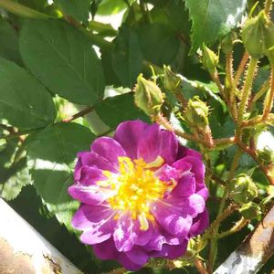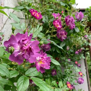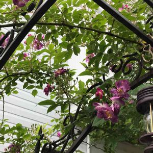 つるバラ ブルー ランブラー ドイツ語で「スミレ色」 とてもきれいな明るい紫。 半日陰でも育つみたいです🎶 生田緑地ばら苑にて