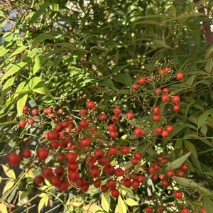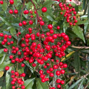 散歩道の立派なナンテンです🤗 毎年赤い実がたわわに実ります🔴 散歩中の方々が立ち止まって見て行きます🤗