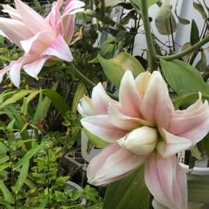 立ち寄った陶器のお店で、 八重のユリ見つけました。😊 お店の方が、新種のカサブランカと教えて下さいました。🌸💕