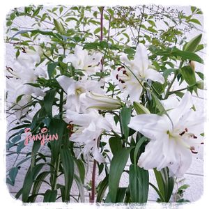 💕今年の花は小さいネ💕 (白八重咲 カサブラン) 花言葉🌸 壮大な美しさ 雄大な愛 純粋 無垢 祝福 高貴 威厳 甘美 本来 カサブランカ は 白🤍のみをさして☝️いう🌿 カサブランカの名前の由来 『casa』は(家) 『blanca』は(白い) から白い花の事だと!! ゆりの園芸品種は 7つ カサブランカは 「オリエンタル・ハイブリッド」 流通上カサブランカと 同じ種のユリを カサブランカ・¨¨ピンクと表示 する場合が多々あるとの事 私もピンクのカサブランカ 🎀💕💓💗持ってるよ 球根の袋に書いてたし 売ってる所でそう言ってた😂 3本 一緒に咲いてます 今年は背丈もおなじ 花の小ささもおなじ 急な暑さのせいなのか 咲く前から花びらが傷んでいます 重なり合って 尚さら可哀想なので 真ん中の1本 切りました 匂い(香りですよネ)が キツ過ぎて 具合が悪くなるので 家の中は私は❌ しょっ中開け閉めする 玄関に飾ります 🎼🎤 カサブランカグッバイ 演歌で聞いたような 今日は 🏷𓈒𓏸︎︎︎︎花の金曜日