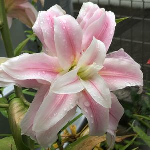 おはようございます🎵 朝カーテンをひらいたら~✨✨ ユリのお花が咲いてました✨✨ うっとり💗 雨上がり🌈この瞬間を逃したら❔濡れるのカクゴでパチリ✨ 香りもステキでした✨