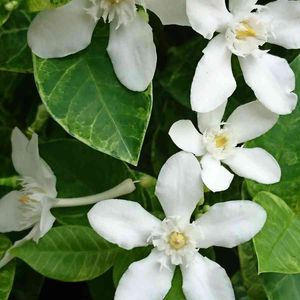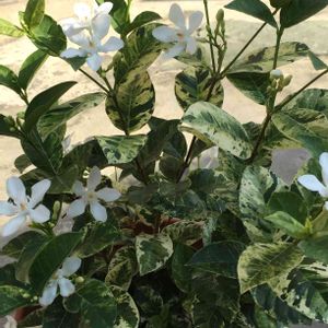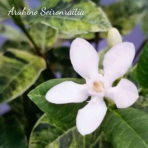 セイロンランティア キョウチクトウ科 常緑樹低木 原産地:スリランカ 純白の花に班入りの葉 さ・わ・や・か 鬱陶しい天気の気分が 和みますよ~🤍🤍🤍💕☘️