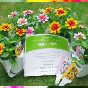 ゚*.。.*゚*.。.*゚*.。.*゚*.。.*゚ サカタのタネ ジニア 「プロフュージョン」 キャンペーンに当選しました👏 サカタのタネ様、 この度はご縁をありがとうございます🙇♀️ とっても可愛い元気な苗が、 先程届きました! 手前のイエロー系は、 レッドイエローバイカラー 奥のピンク系は、 チェリーバイカラー ジニアを育てた事がないので、 ワクワクしています☺️ 育てる様子などを これから投稿していきますので、 どうぞ宜しくお願いします🙇♀️🙇♀️